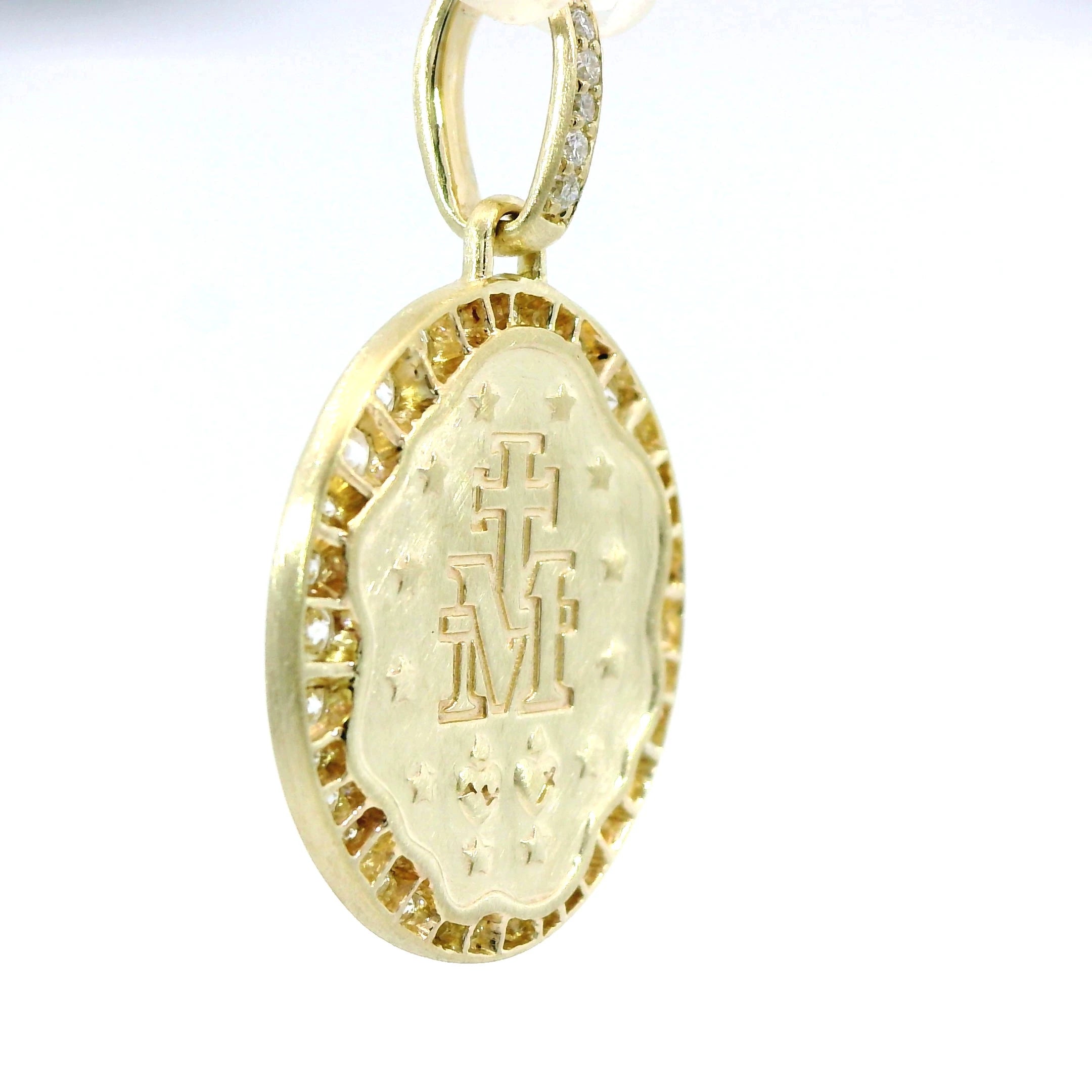Designed in London, this is a medal of gentle contrasts. The 9k recycled gold is given a soft, matte finish, like a story worn smooth with retelling. It doesn't shout; it glows. Around the Madonna, a scattering of lab-grown diamonds are set, catching the light like little sparks of memory. Each detail is brought to life by our artisans in Thailand, creating not just a piece of jewellery, but a small, solid piece of a story, ready to be passed on.